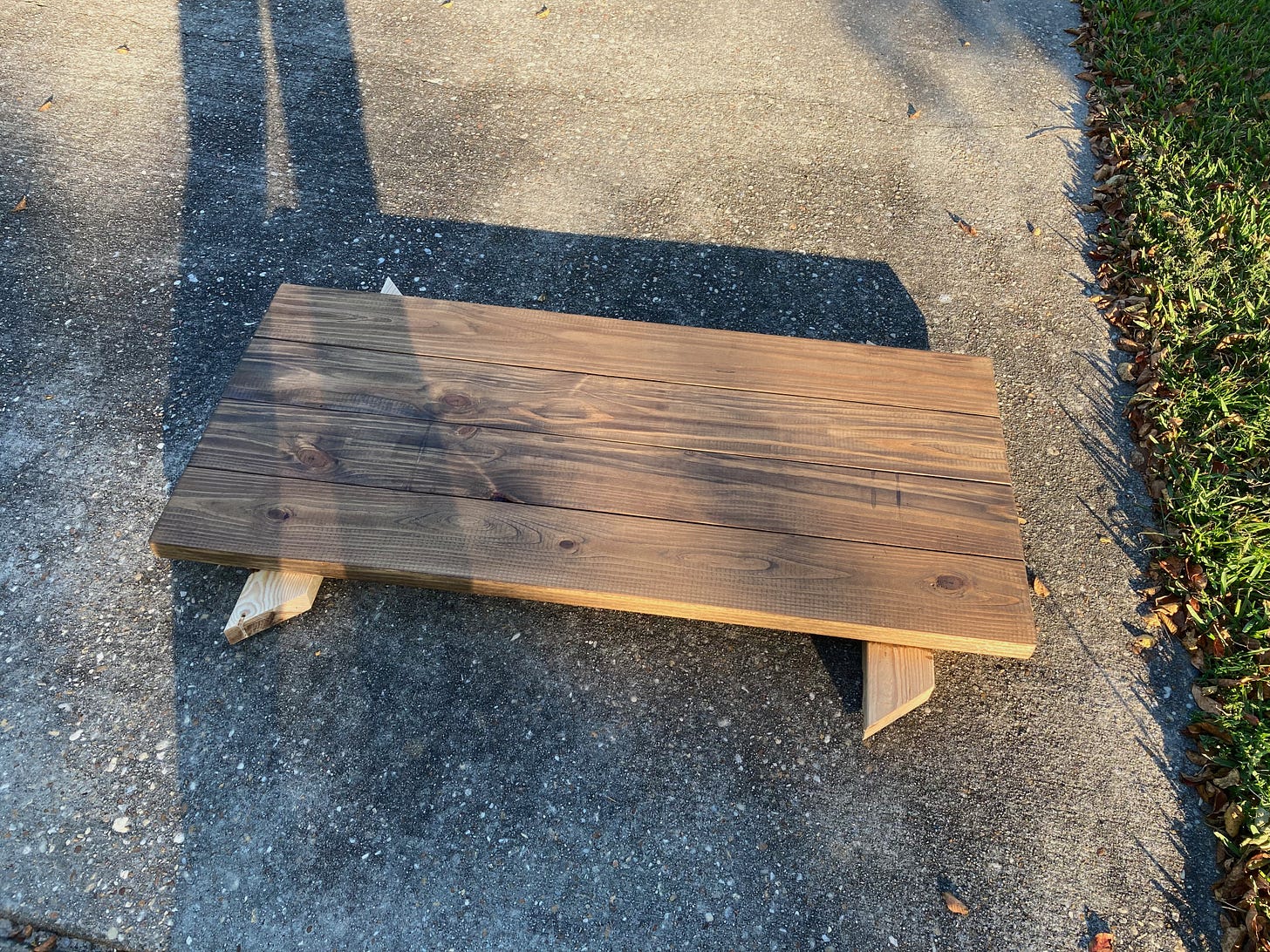 This will always be my first piece of furniture and I don’t hate it. The project was easy enough and fun enough to keep me coming back to making more furniture (and getting better). It did only take two days and it lasted a year so far. I plan to move it outside and list it on “curb alert,” a Facebook post that lets people know they can come grab it for free. I hope someone else will get more use out of it.